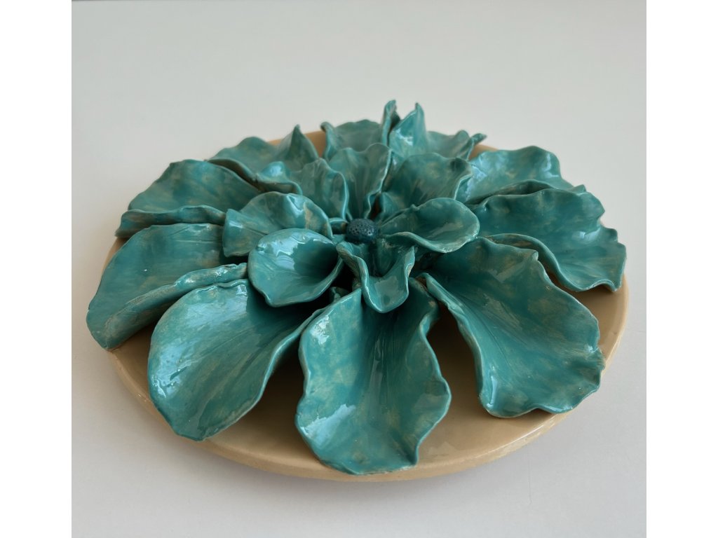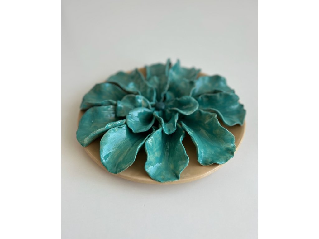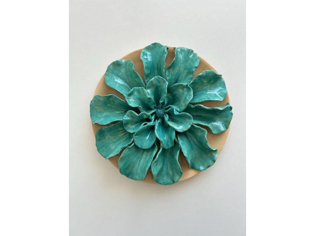 Maxi květ v tyrkysové barvě s jemnými detaily. Každý okvětní plátek je ručně vytvarován a poskládán do krásného květu.