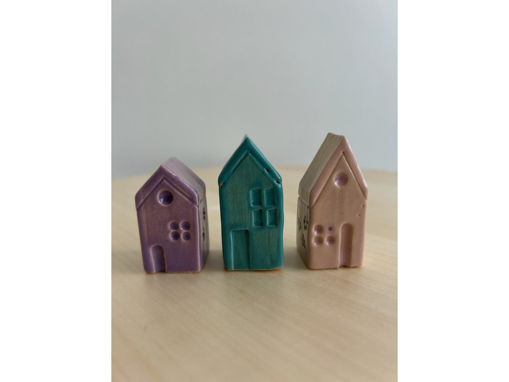 Roztomilé ručně tvarované mini domečky v jemných pastelových barvách.