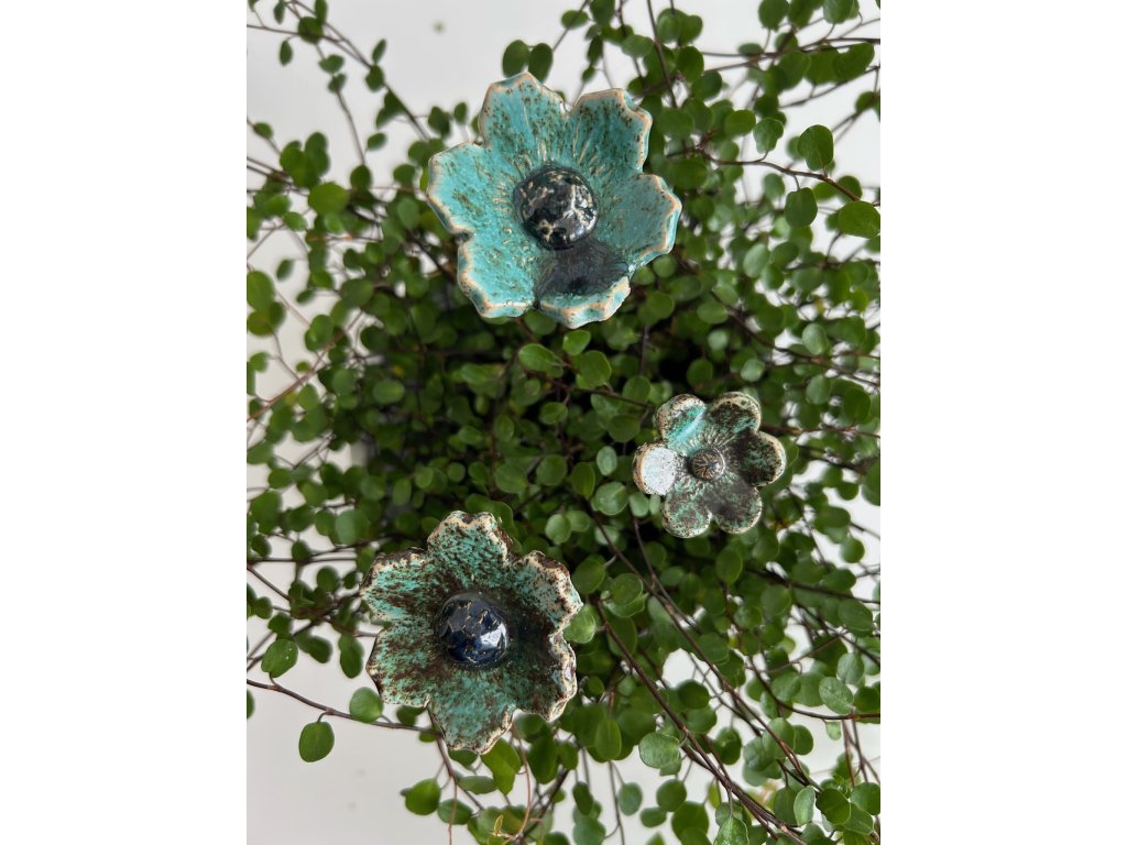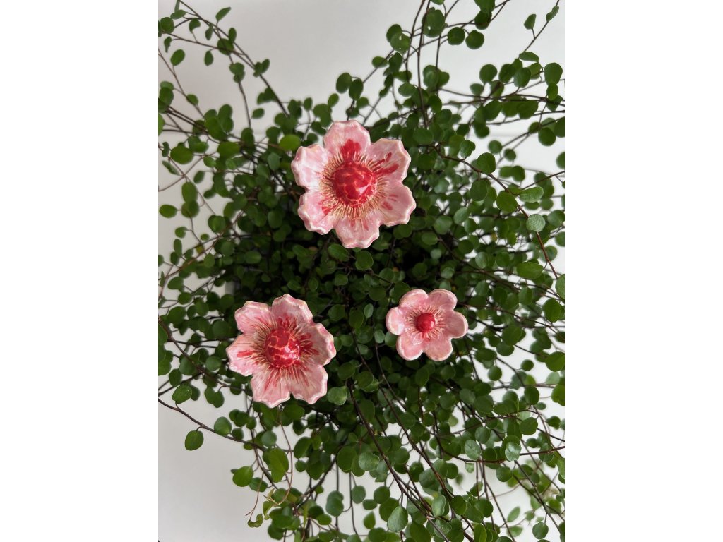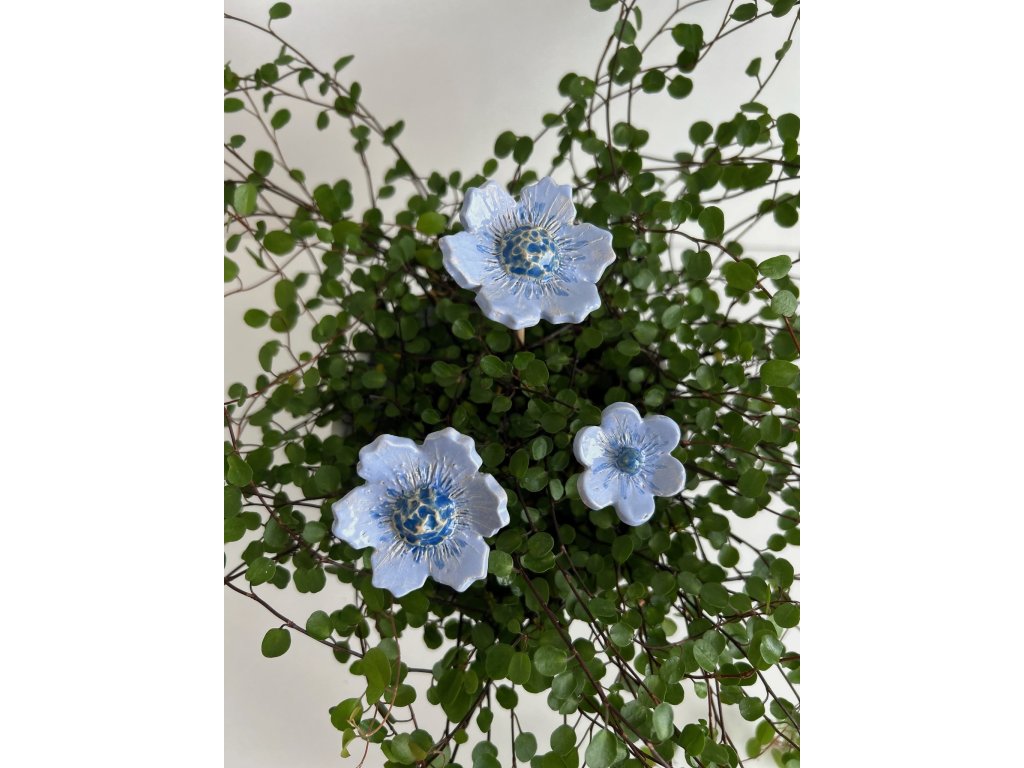 Ručně tvarované květy s jemnými detaily. Pro vytvoření letní atmosféry ve vašem domově i kanceláři. V zahradě může sloužit jako mini pítko pro hmyz. Ve spodní části je otvor pro drátek nebo špejli. Každý květ je tvořen a glazován ručně, proto se mohou mezi sebou mírně lišit