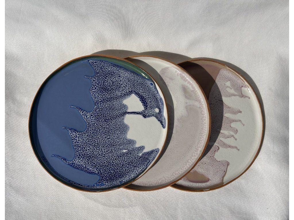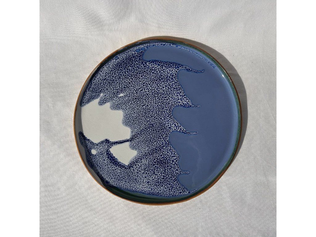 Dekorační talíř s velmi efektivní glazurou na světlé kamenině.