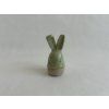 Ručně tvarovaní jarní zajíci vytvořené ze světlé kameniny se svěží kropenatou glazurou.